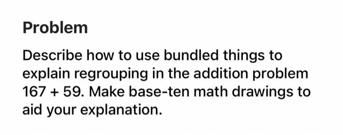 Solved Problem Describe How To Use Bundled Things To Explain Regrouping In The Addition Problem 167 59 Make Base Ten Math Drawings To Aid Your Explanation